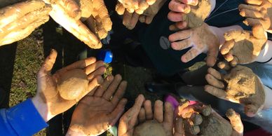 We work with children by using a range of fun and practical activities indoors and out: such as painting with naturally sourced materials (mud is a favourite), art in nature, natural lego, pond dipping, digging, growing and dog walking. Children engaging in this way provides them with the opportunity to communicate in a relaxed and safe environment.